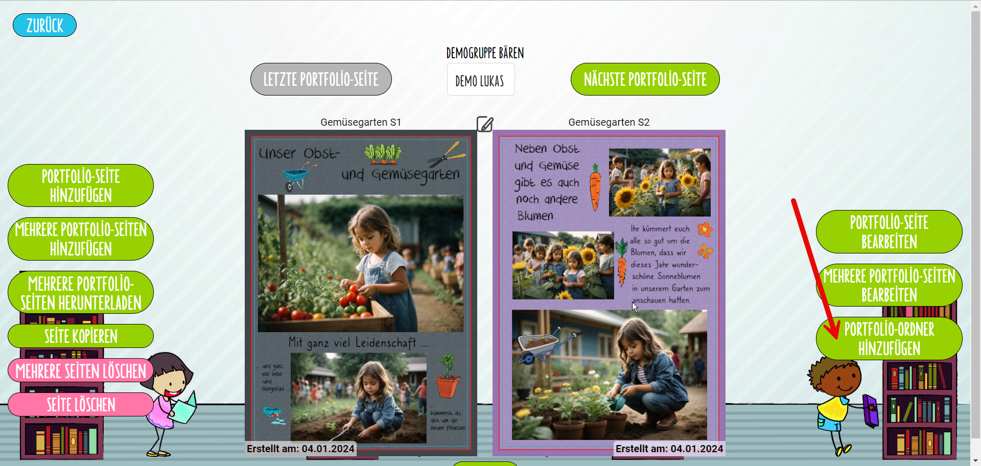 – Eine Portfolio-Seite für mehrere Kinder gleichzeitig gestalten