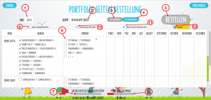 In der Legende oberhalb der Tabelle werden die einzelnen Symbole erklärt, die du neben den Portfolio-Seiten-Namen findest. Das Symbol bei (10) bedeutet, dass diese Seiten von dir angeklickt und markiert wurden und du sie mit einem Klick auf „Bestellen“, bestellen kannst.